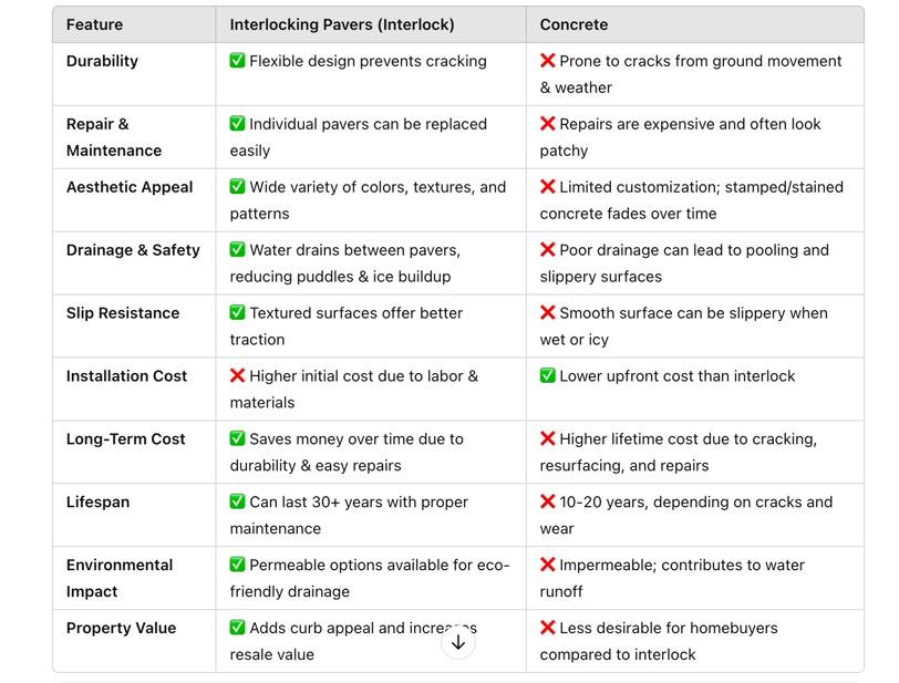 For areas that experience heavy rain, snow, or ice, interlock is the safer and more practical choice.