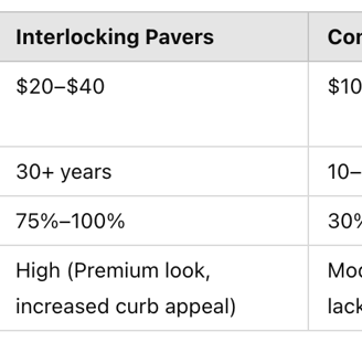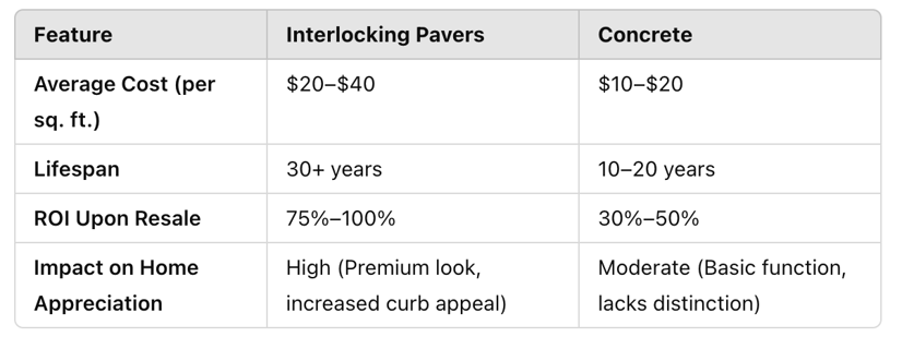 interlocking pavers and concrete compare in terms of ROI, curb appeal, and long-term property appreciation.